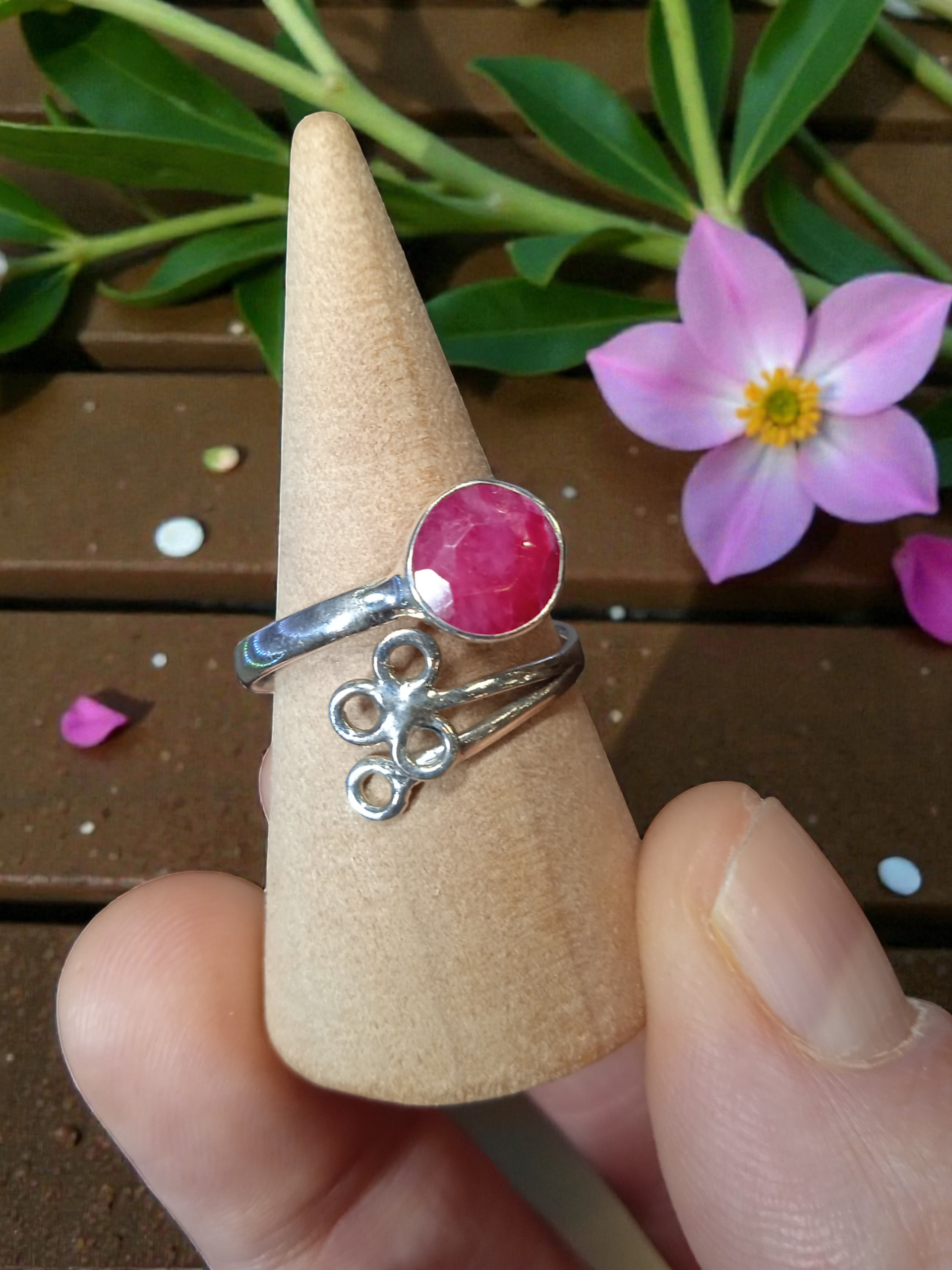 Bague en Argent 925 et Rubis Naturel – Ajustable – Création Artisanale