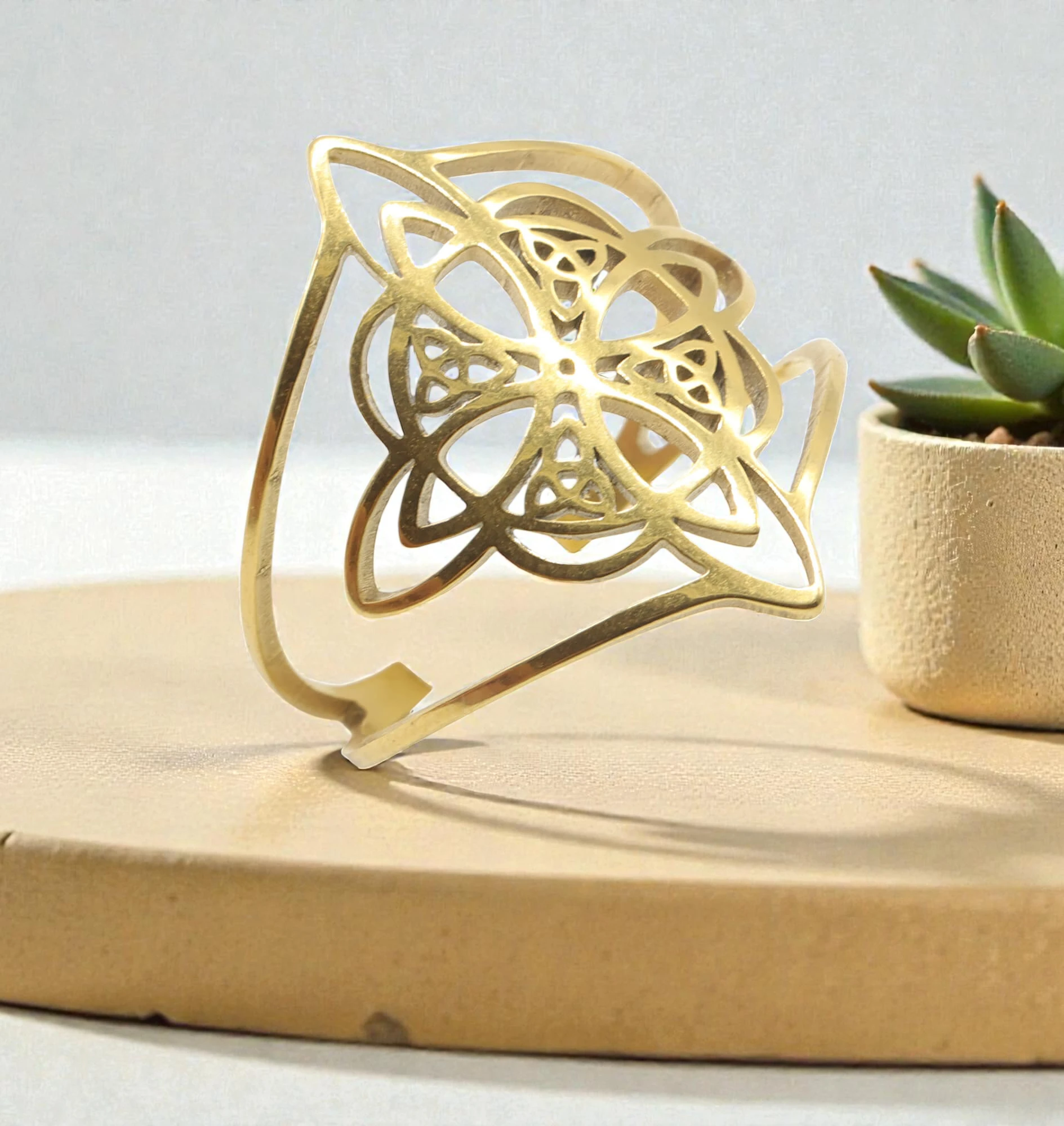 Bague Nœud de Sorcière en inox plaquée or, élégante et mystérieuse.