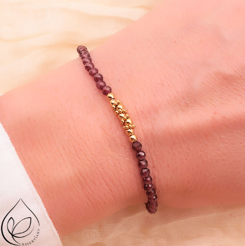 BRACELET GRENAT RHODOLITE AA DORÉE