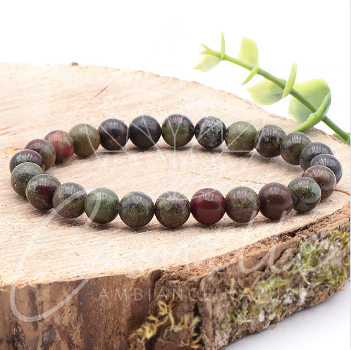 Le bracelet jaspe sang de dragon fortifie l’ancrage lié à l’énergie de la Terre. Cette pierre aide à s’ancrer dans le présent et à profiter du moment. Elle réduit les pensées négatives liées au passé et encourage les pensées positives tournées vers le futur.
