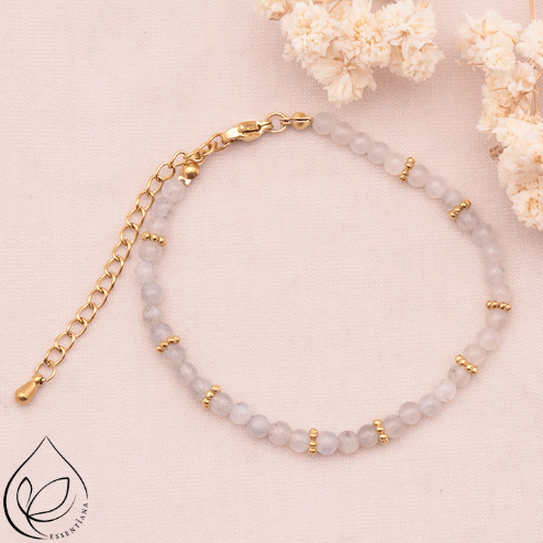 L’acier inoxydable doré apporte une touche de lumière et de modernité au bijou. Ce métal de qualité conserve sa brillance dans le temps, sans s’oxyder ni se ternir. Chaque bracelet est entièrement fait main, avec une attention particulière portée à la sélection et à l’assemblage des pierres. Léger et agréable à porter, il se marie facilement à tous les styles, du plus casual au plus raffiné.