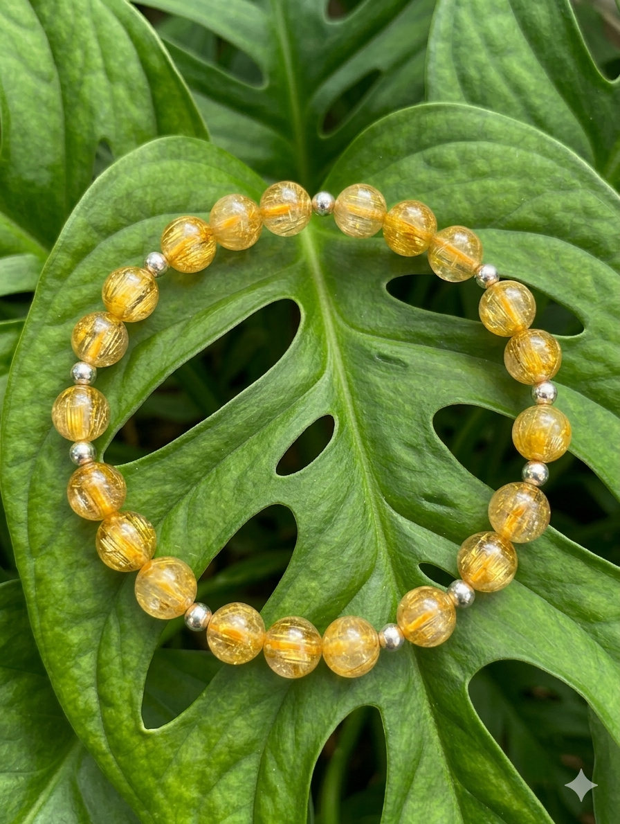 Très beau bracelet, la qualité AAA est vraiment visible et lumineuse. J’aime beaucoup l’éclat doré du rutile qui donne un effet brillant et naturel à la fois. Le petit détail en argent 925 finit superbement l’ensemble.